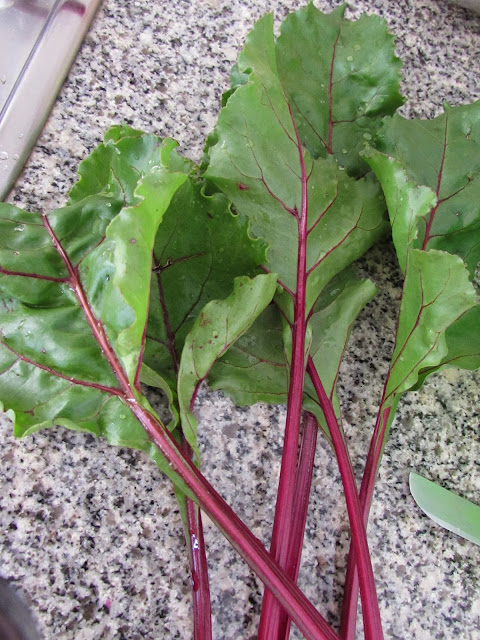 Hoy he traido del huerto una remolacha con sus hojas.